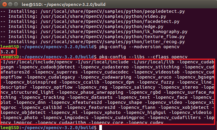 (6) OpenCV 3.2.0 이 제대로 설치 되었는지 확인해줍니다.